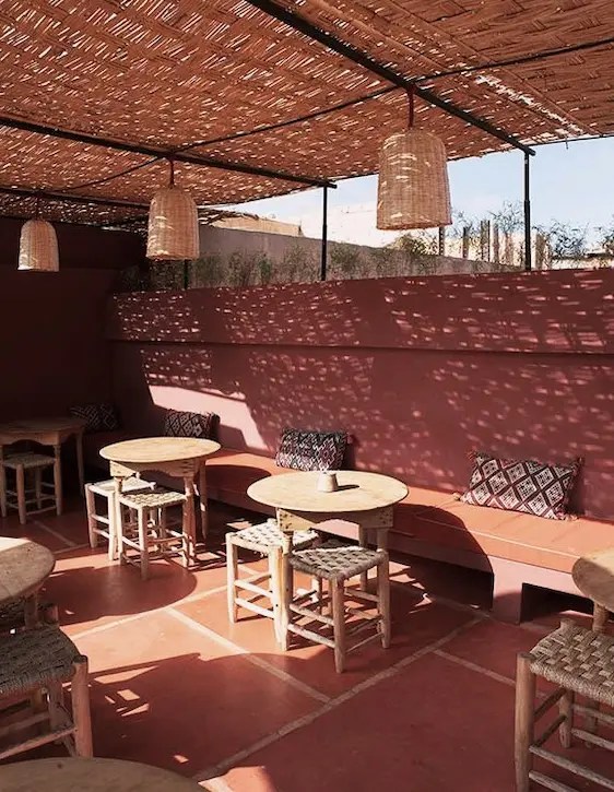 M Rooftop by Medina Heritage sits five minutes west of the main square. It provides a quiet space away from the dense crowds. The address is 58 Angle Rue El Ksour Et. Standard coffees and mint tea cost 20 to 30 MAD. The restaurant opens daily from 12:00 to 23:00. You access the upper open air terrace by stairs. The traditional building has no elevator.